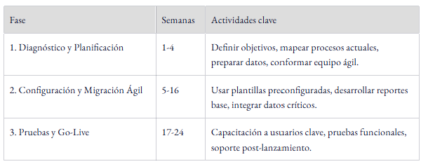 Si bien es posible implementar soluciones EPM en plazos acelerados, los tiempos varían considerablemente según el tamaño y complejidad de la organización: