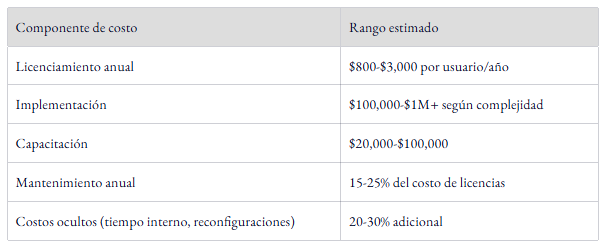 Los costos de implementación de EPM varían significativamente según la solución elegida y el alcance del proyecto: