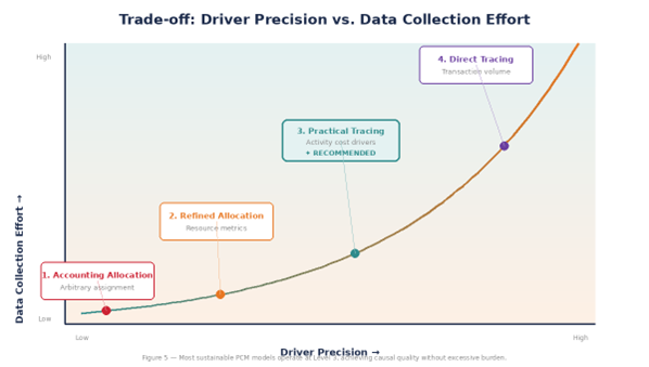 Recommendation: For most profitability models in mid-to-large organizations, Level 3 (practical tracing) offers the best balance between causal quality and operational sustainability. Level 4 should be reserved exclusively for cost components with the highest materiality and distortion.