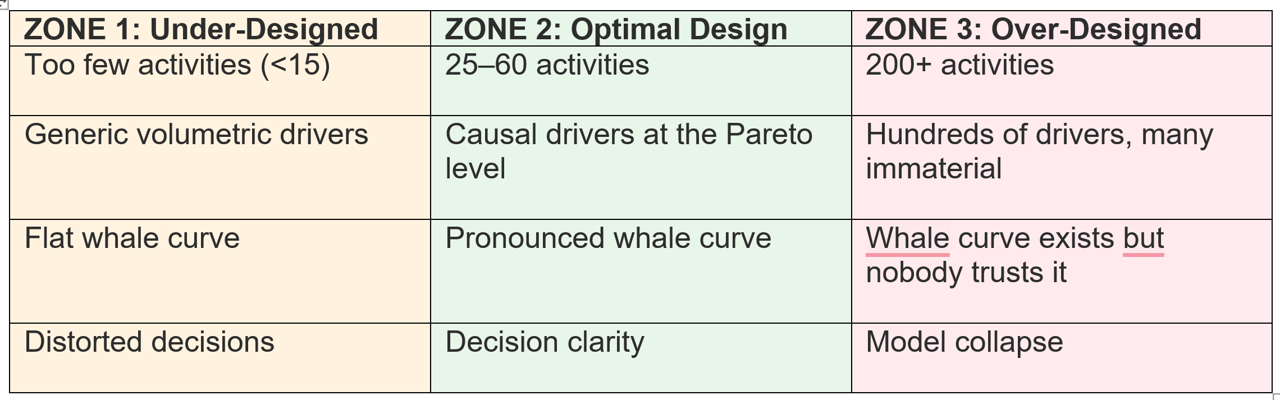 This whitepaper presents a practical framework for determining the optimal level of detail in Profitability and Cost Management (PCM) models, whether implemented using traditional ABC/M methodology, Time-Driven Activity-Based Costing (TDABC), or modern multi-dimensional costing platforms. It integrates over two decades of model design experience across more than 15 countries with the latest research on granularity, causality, and model sustainability.